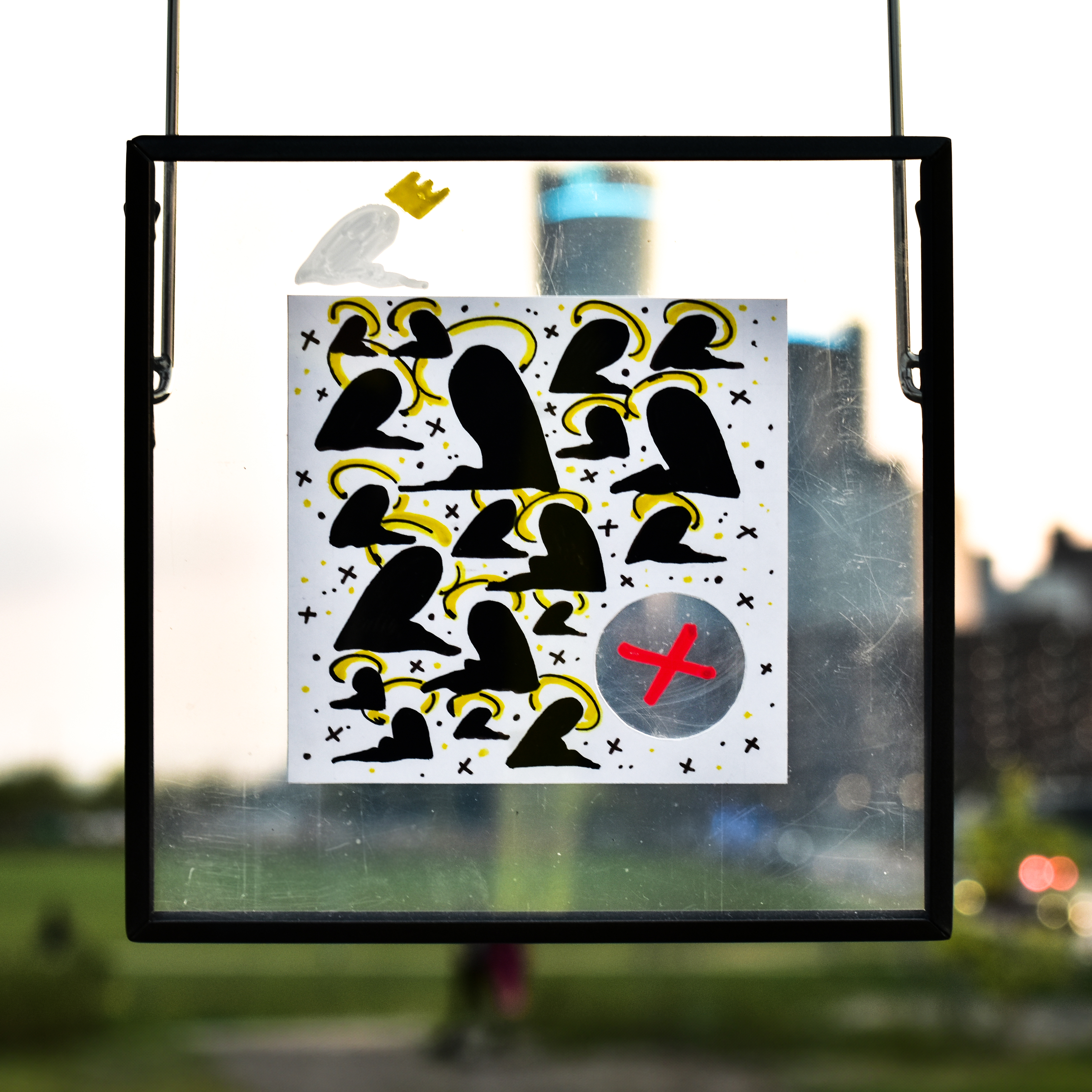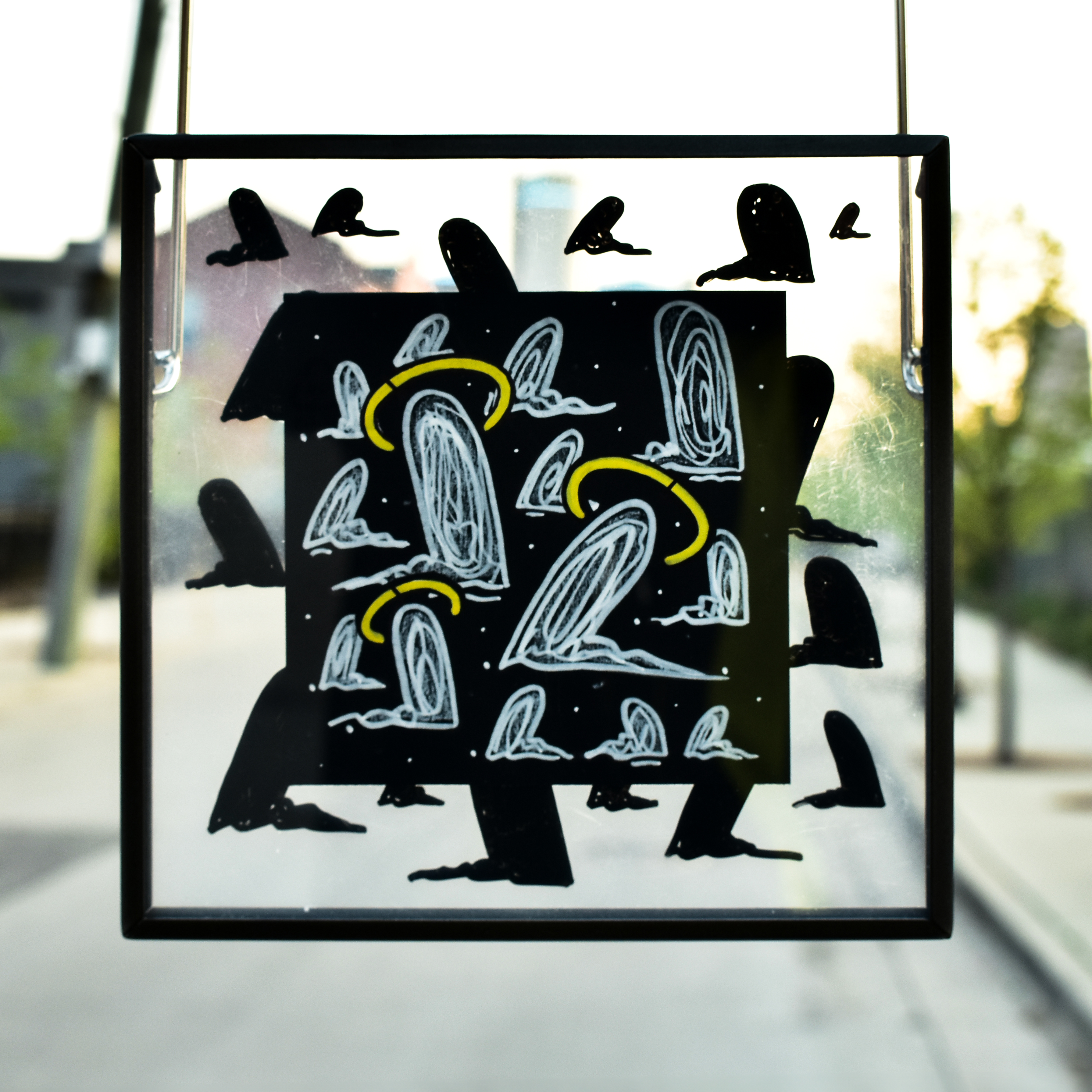 Oil based markers and paper on layered polystyrene, 6.25″x6.25″